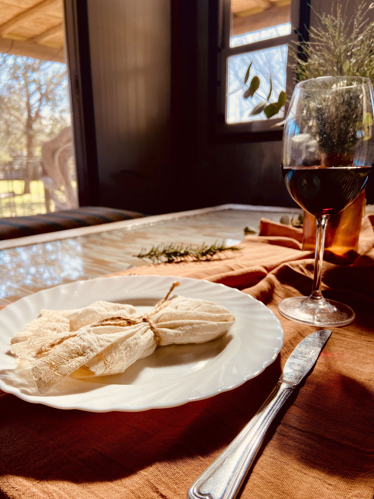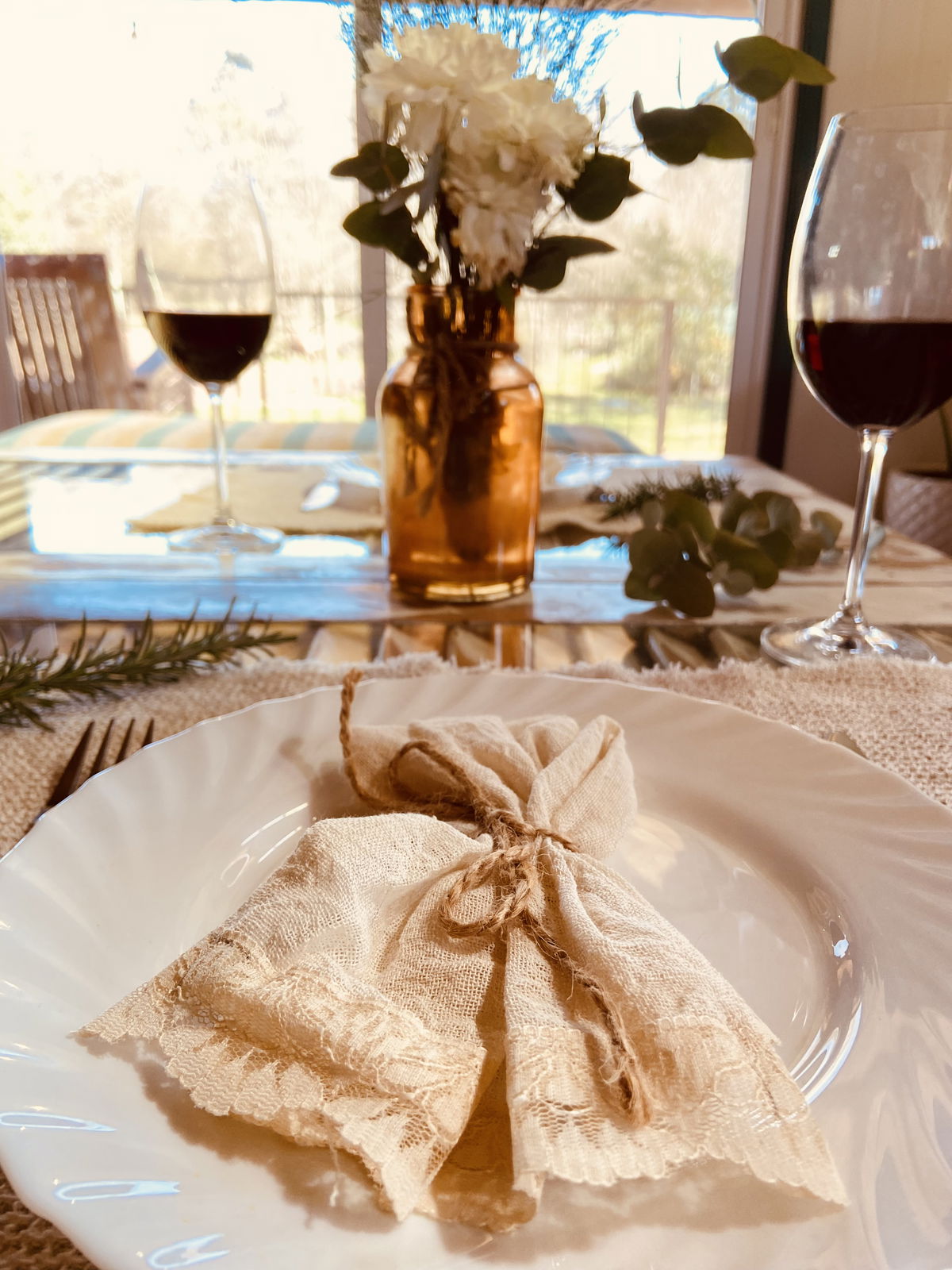 Servilletas de gasa y encaje rústicas
