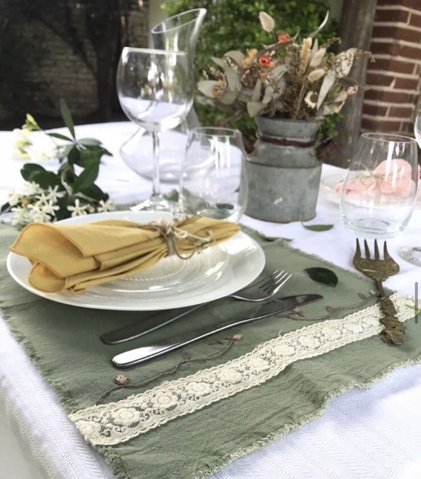 . Individual en tela tusor ALPES 100% algodón, bordado a mano.